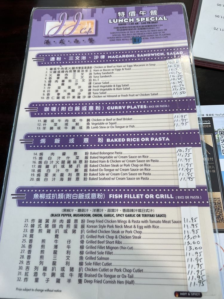 JJ Hong Kong Cafe Menu (2025 Update)